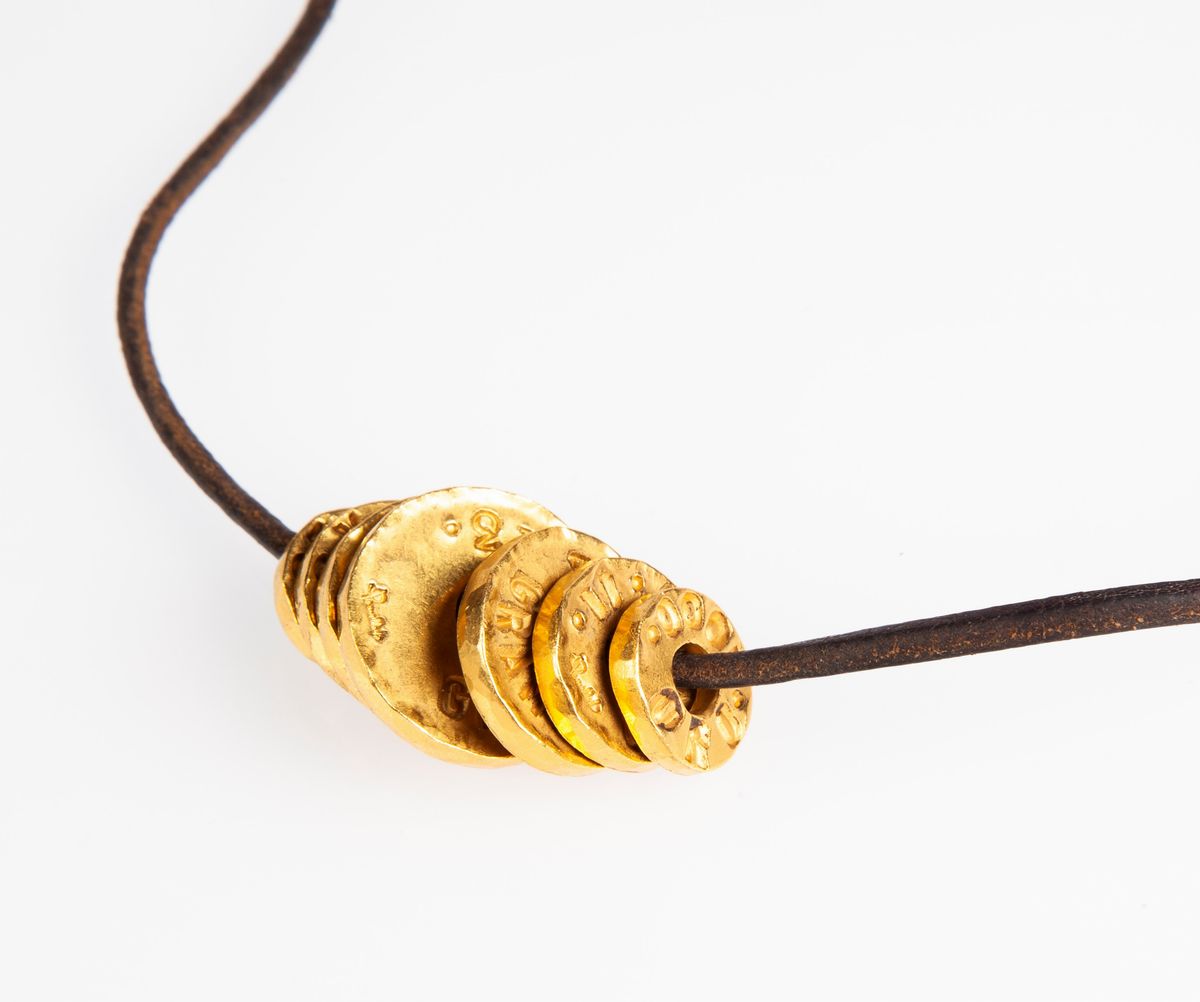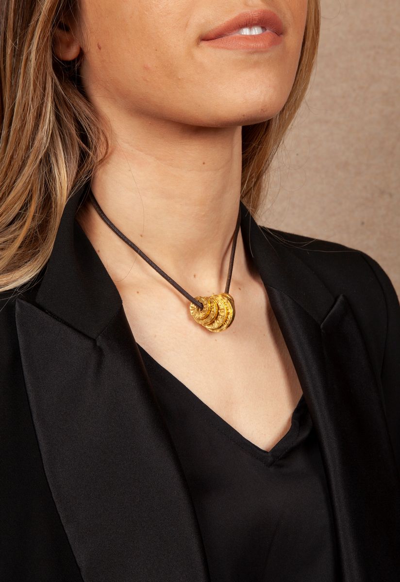 Pomellato - girocollo con sette dischi di oro puro e laccio in caucciù