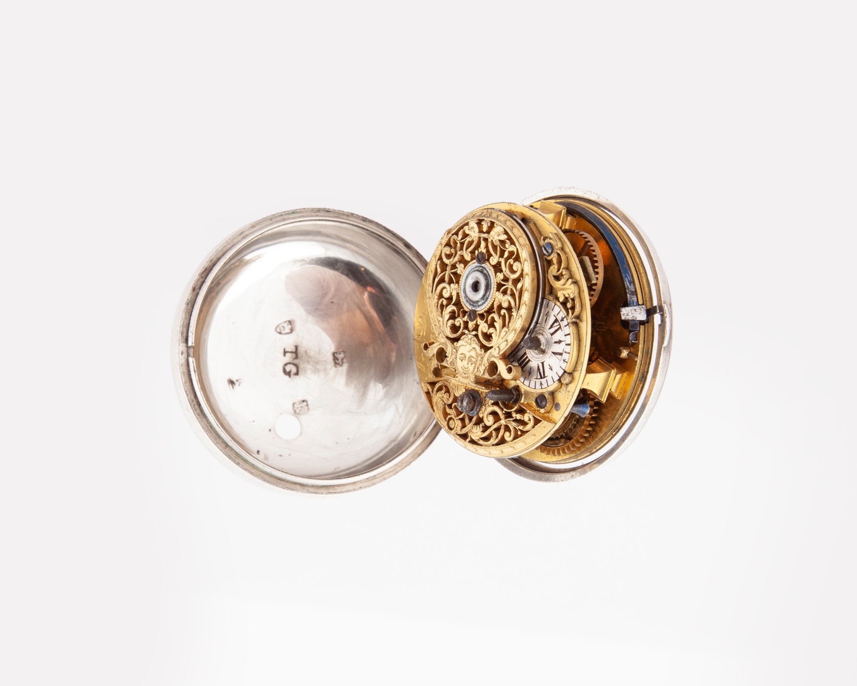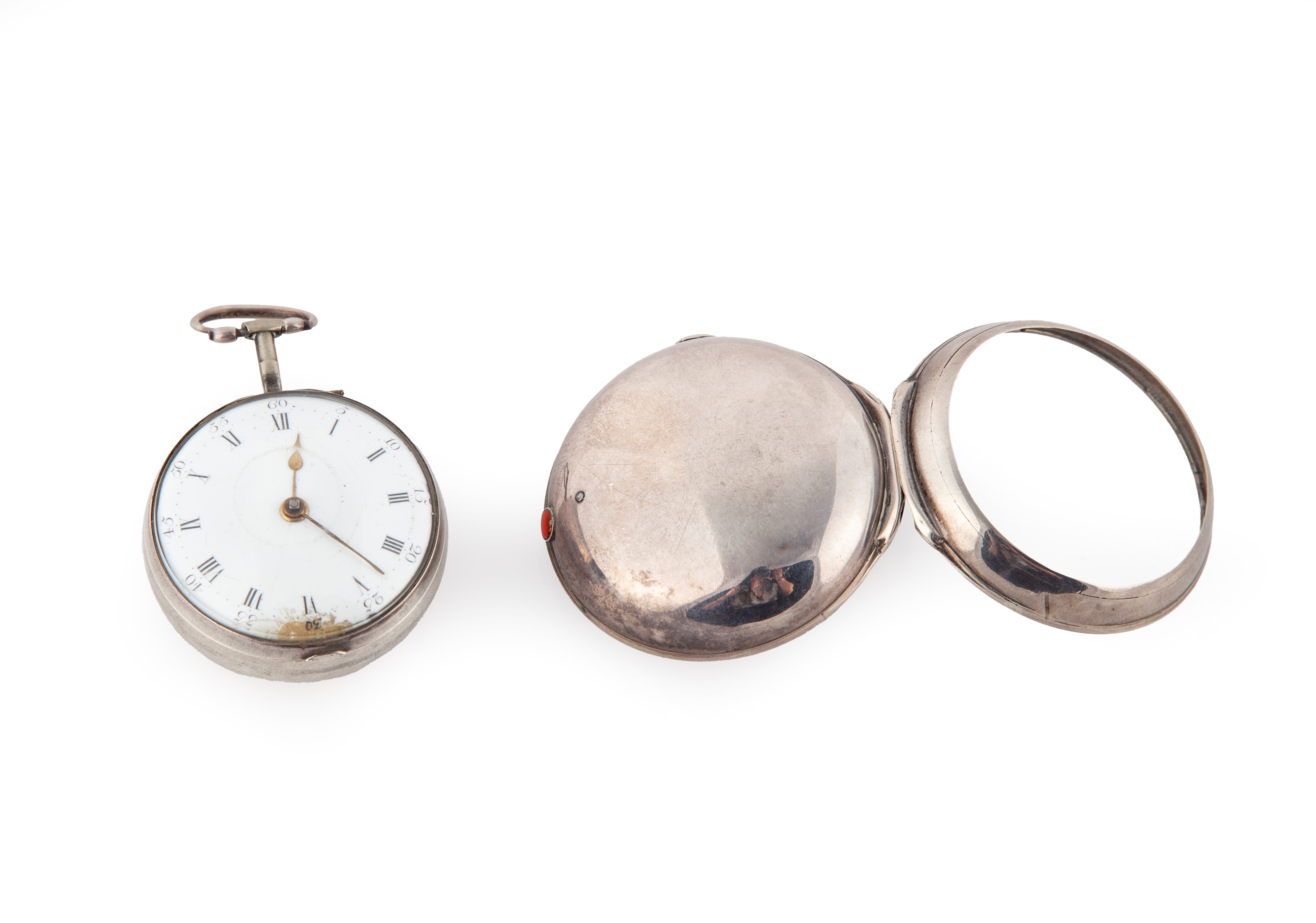 Andrew Dunlop London - Orologio da tasca a doppia cassa in argento 1780 ca. Scappamento a verga con carica a chiavetta. Quadrante in smalto. Firmato sulla piastra in ottone dorato.