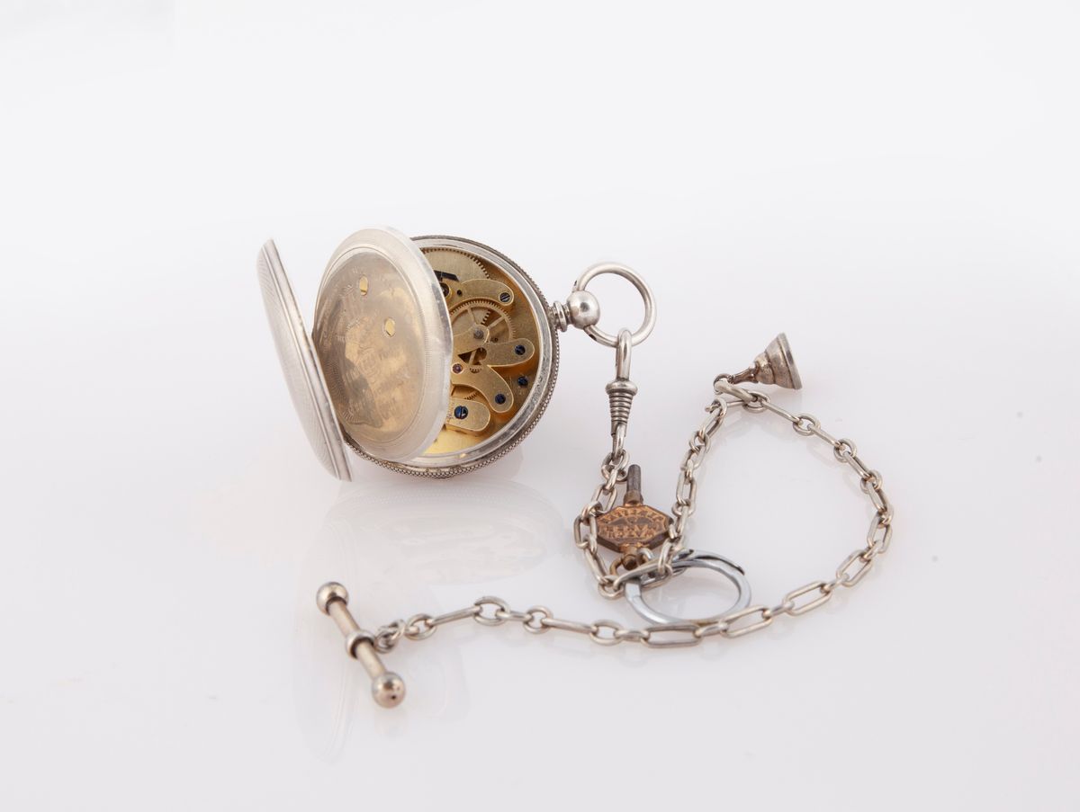 Bornard e Cie St.e Croix - Orologio da tasca a chiavetta con secondimetro da uomo in argento (?) con catena in argento
