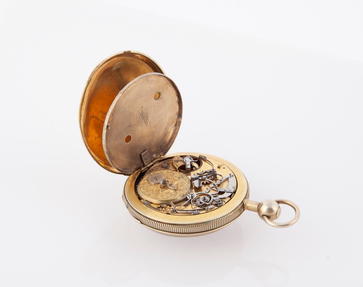 Brandt Jeanrenaud & Robert - Orologio da uomo da tasca ripetizione suoneria ore e quarti con carillon in argento dorato 1840 ca. Firmato sul parapolvere