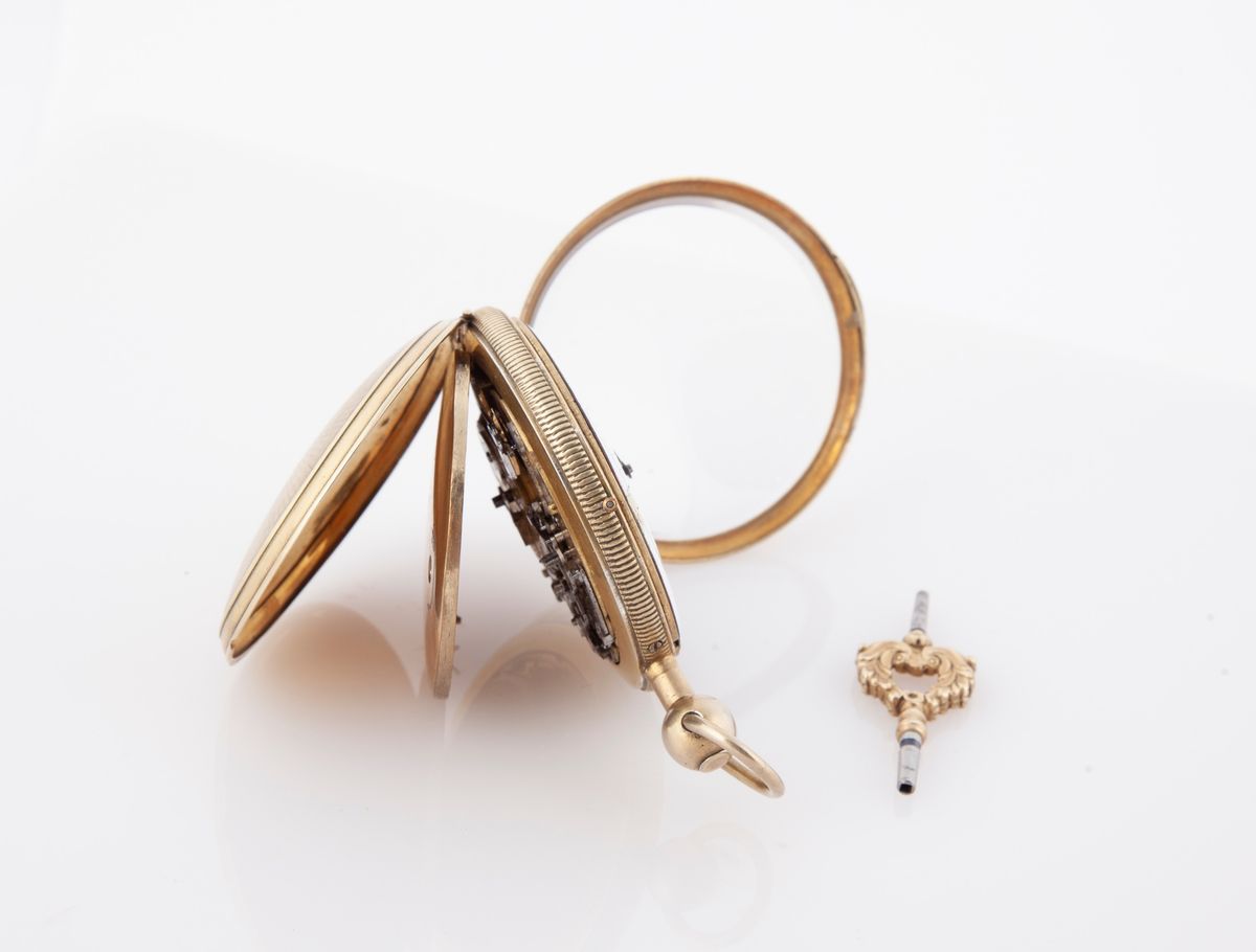 Funzionante da revisionare. Cassa in argento dorato punzonata Vienna 1840 titolo 812/000. Parapolvere in metallo. Lievi difetti allo smalto del quadrante. Con chiavetta.