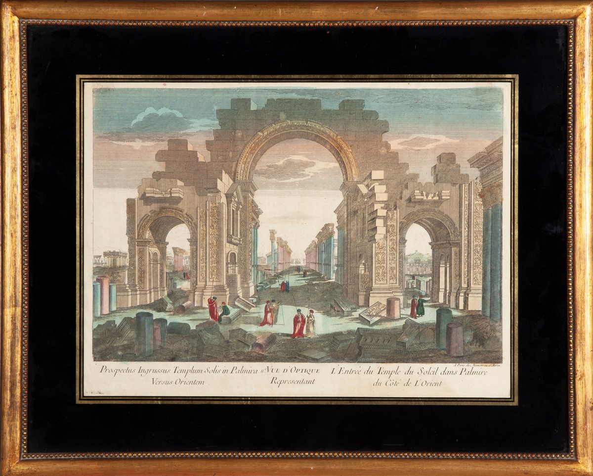 Veduta ottica delle rovine dell'arco del colonnato a Palmira sul lato orientale, Parigi, Jean Francois Daumont editore