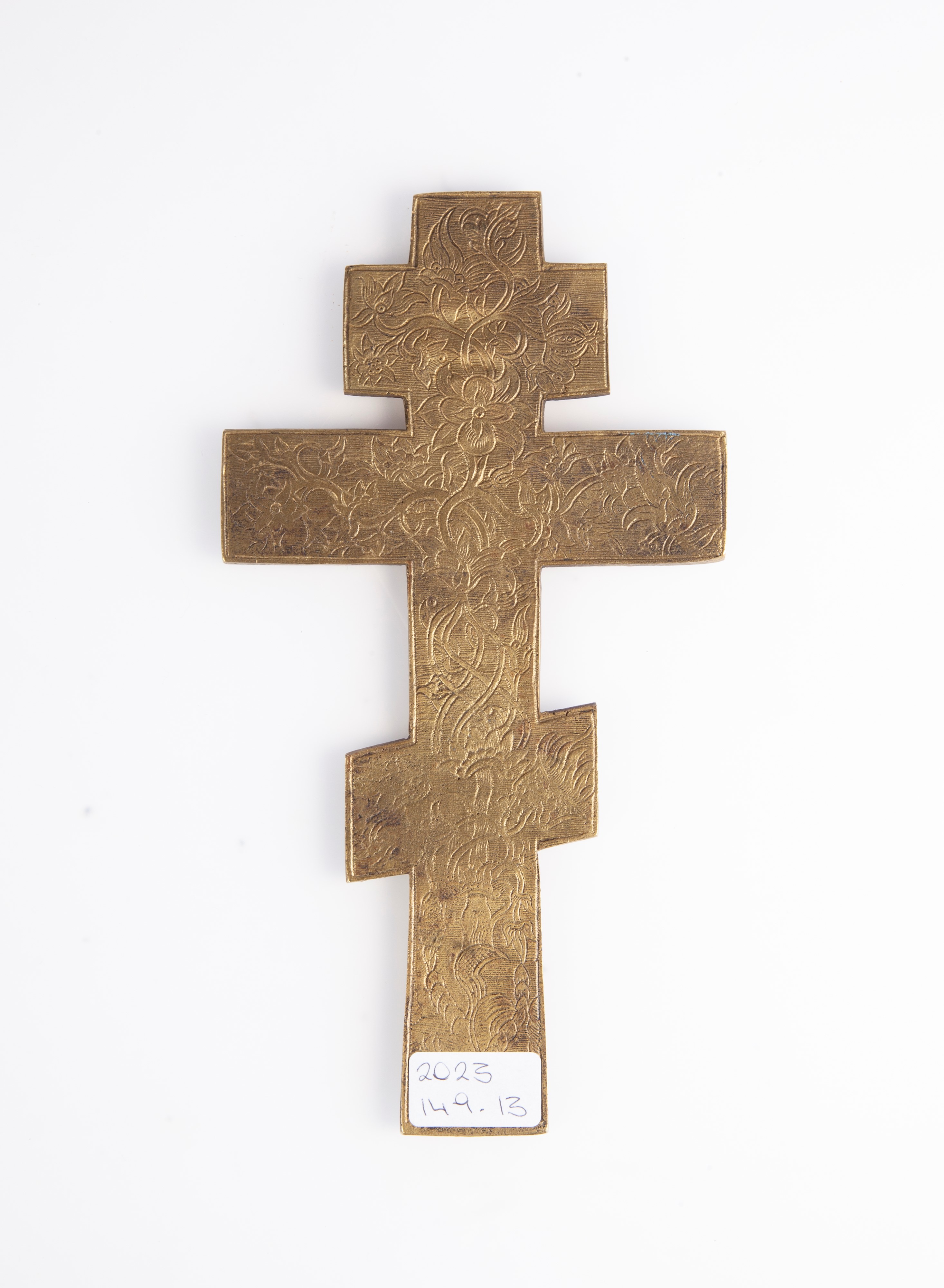 Crocifisso ortodosso in bronzo dorato e smalti, Russia, XIX secolo