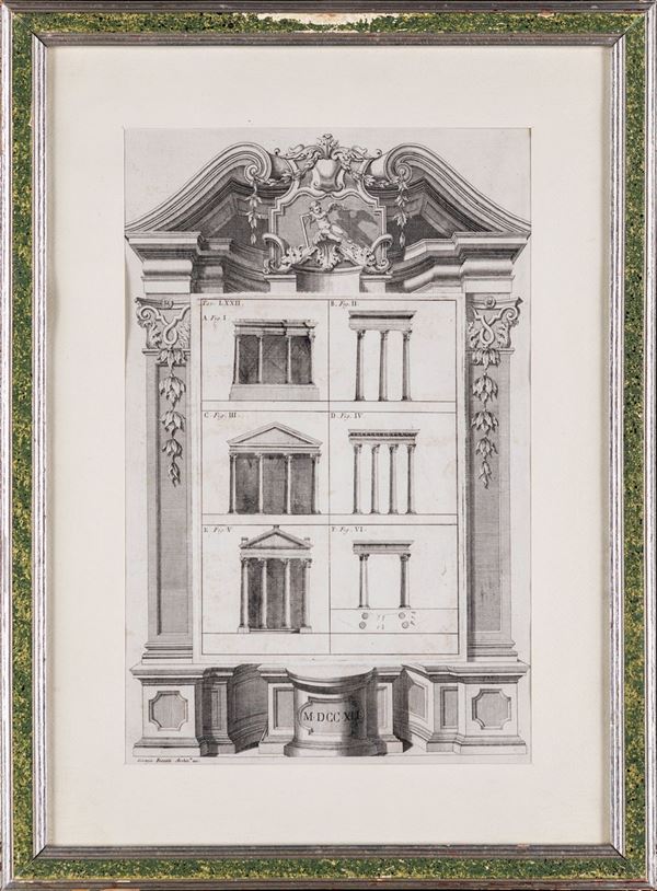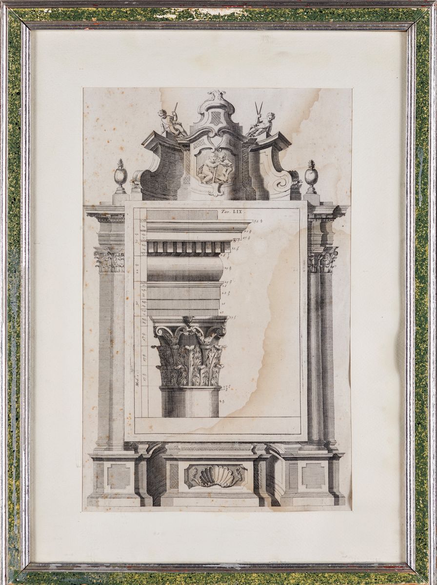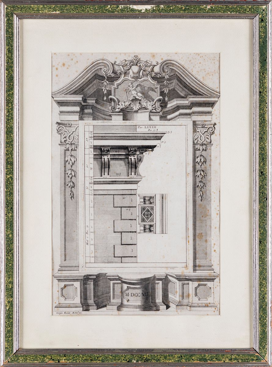 due firmate in basso a sinistra e datate 1741 al centro. Entro cornici in legno argentato con fascia marmorizzata