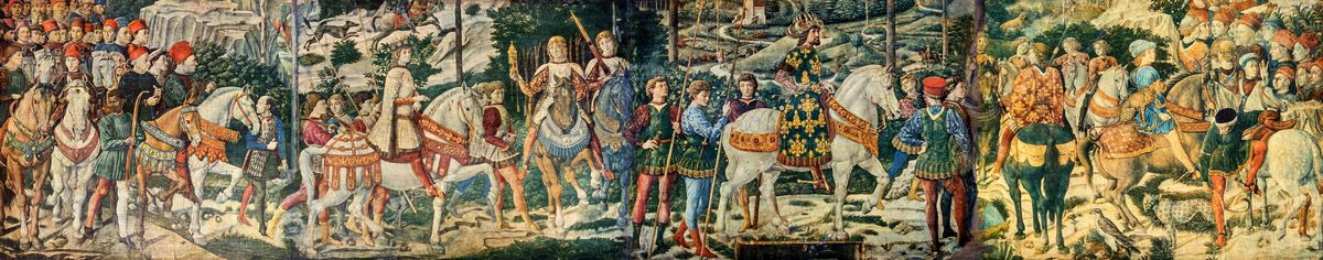 Riproduzione su tavola degli affreschi della cappella dei Magi di Benozzo Gozzoli nel Palazzo Medici Riccardi