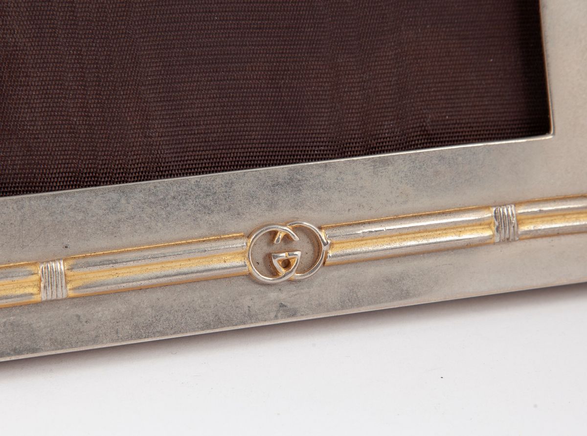 Gucci, due cornici portafoto vintage in metallo argentato