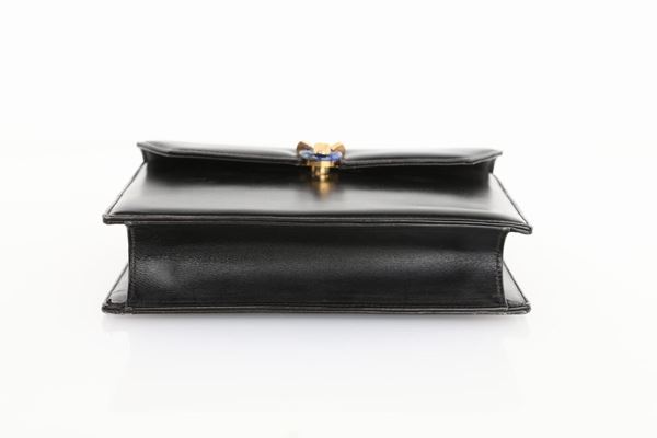 Gucci, borsa in pelle nera e pietra dura sulla chiusura