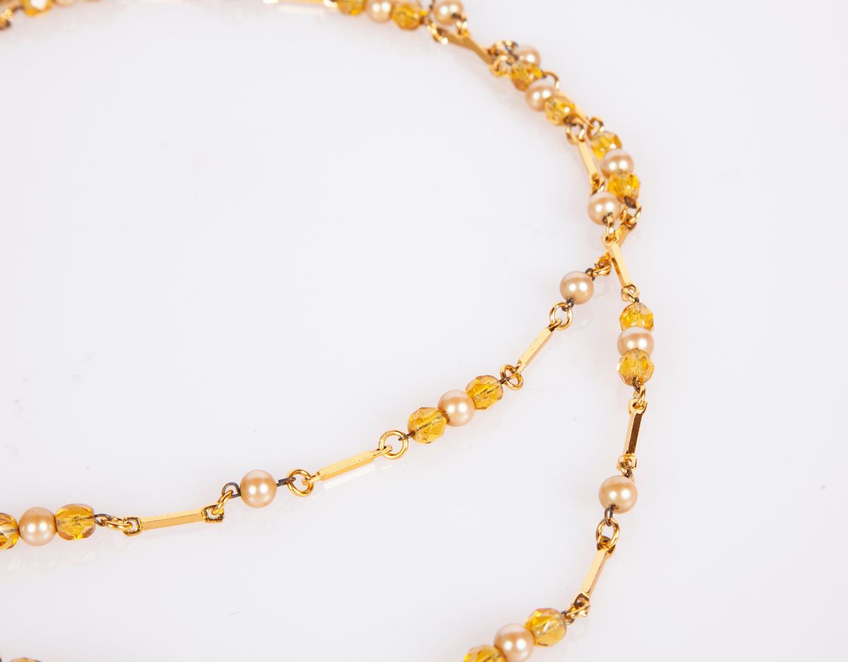Collana in metallo dorato con perle e pietre