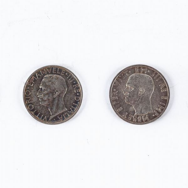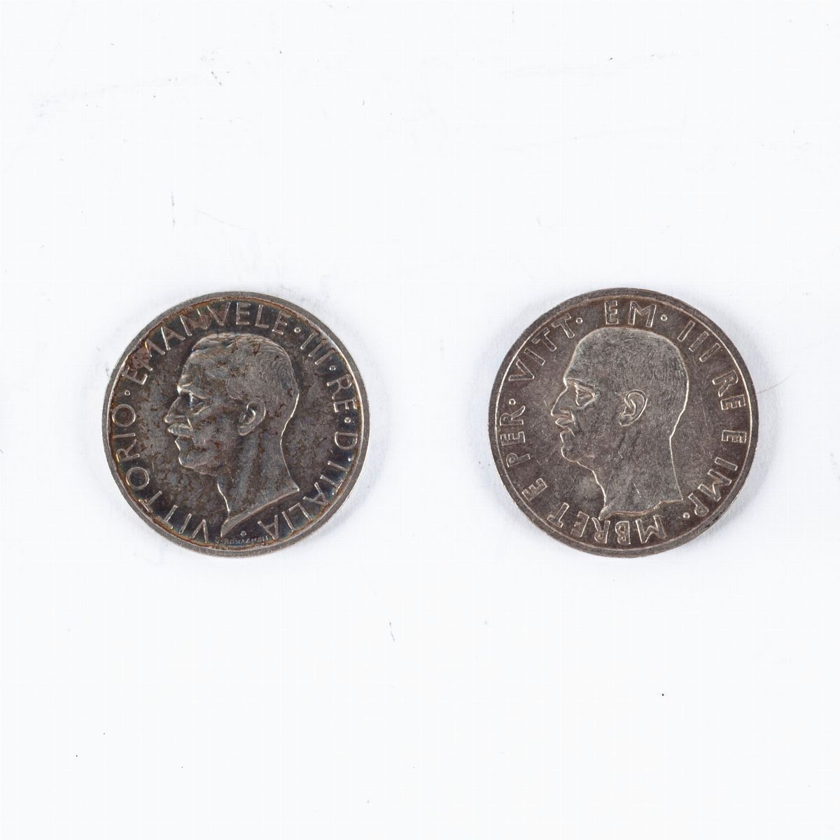 5 Lek XVII 1939 Albania; 5 Lire 1927; 2 monete da 5 Lire 1929 Vittorio Emanuele II Regno d'Italia