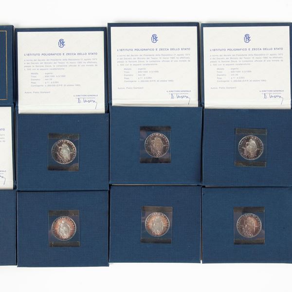 Lotto 10 confezioni: 8 da 500 Lire del 1975 Michelangelo Buonarroti Repubblica Italiana; 1 da 500 Lire del 1975 Repubblica di San Marino; 1 da 1.000 Lire del 1976 Repubblica di San Marino