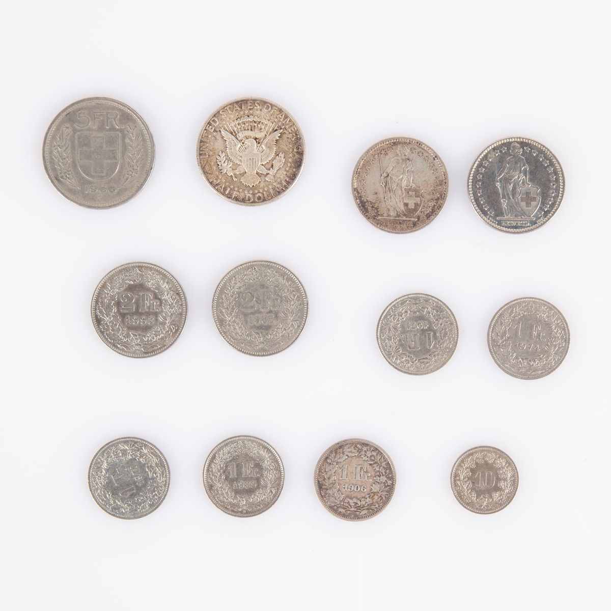 Lotto 11 monete Svizzera e Mezzo dollaro Usa Kennedy 1964