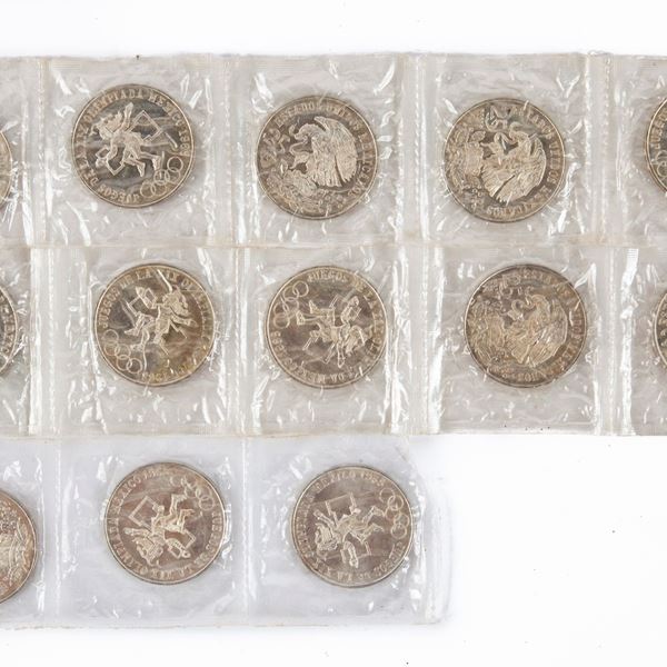 Lotto 13 monete 25 pesos 1968 Stati Uniti del Messico