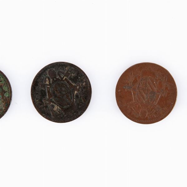 Lotto di 4 monete Stato Pontificio: Mezzo Bajocco 1848 A.III (variante ANN) Roma; Mezzo Bajocco 1848 A.III (variante AN) Roma; Mezzo Bajocco 1849 A.IIII Roma; Quattrino 1854 IX (variante AN) Bologna