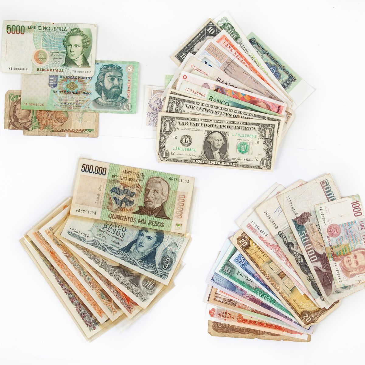 Lotto di 46 pezzi di cartamoneta italiana e straniera