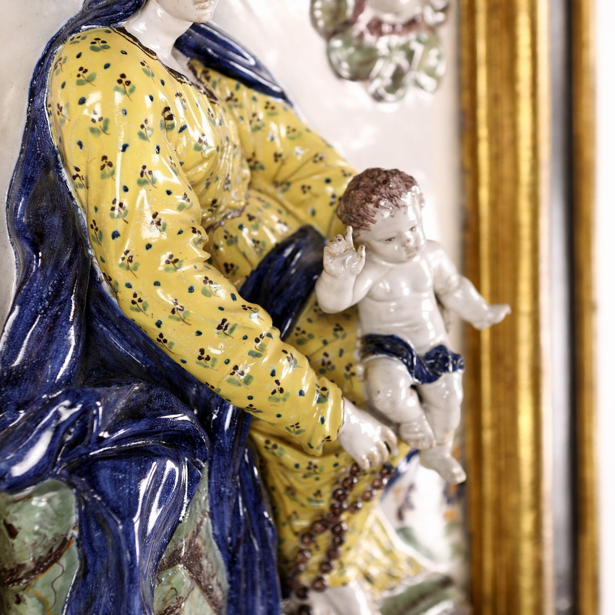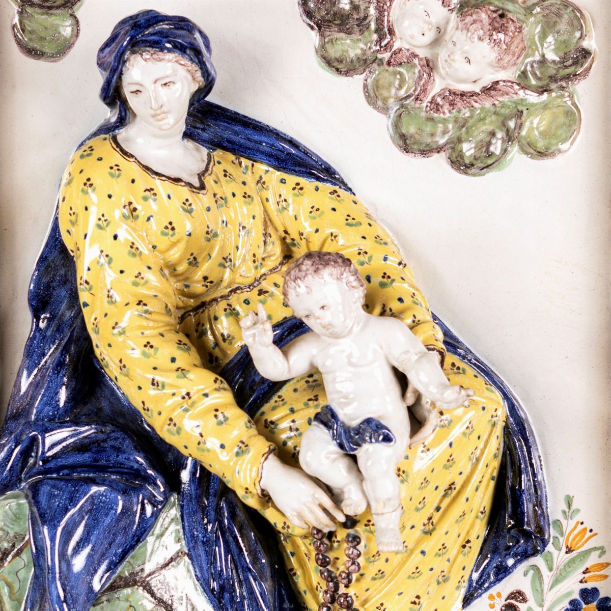 Altorilievo in maiolica policroma raffigurante Madonna del Rosario col Bambino, Ginori, manifattura di Doccia, prima metà del XVIII secolo