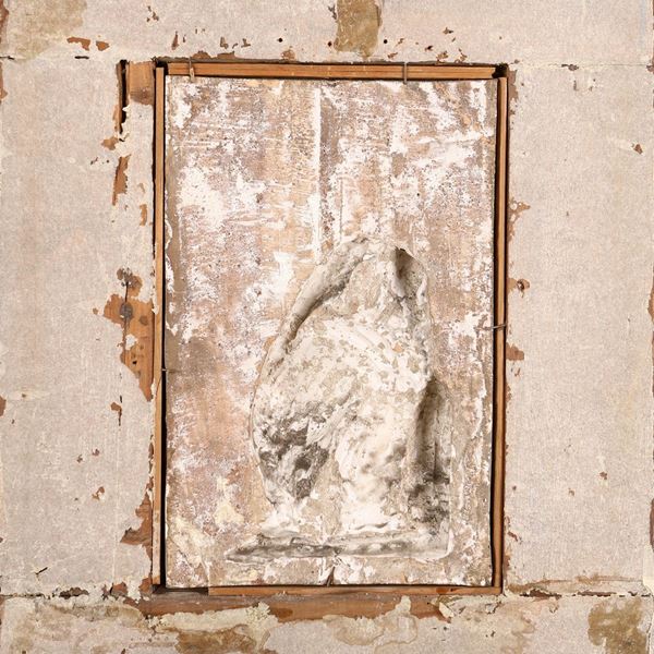dal modello in cera presente nel Museo di Doccia, attribuito a Girolamo Ticciati (1676 - 1744), scultore noto in Toscana con opere marmoree presenti in varie chiese. Nel nostro esemplare vi sono minime varianti e aggiunte: la corona del rosario, forse su commissione, la pianticella simbolica in basso a destra, i due cherubini in alto, gli elementi rocciosi. Cornice in legno ebanizzato e dorato
