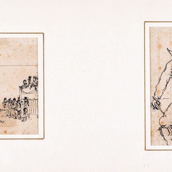 due disegni su fogli di taccuino attribuibili a Bartolomeo Pinelli, entro un'unica cornice
