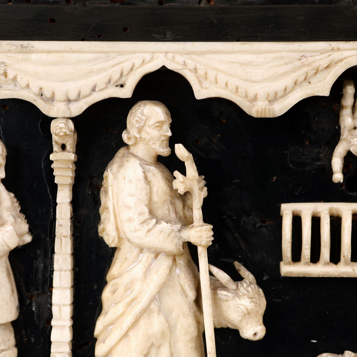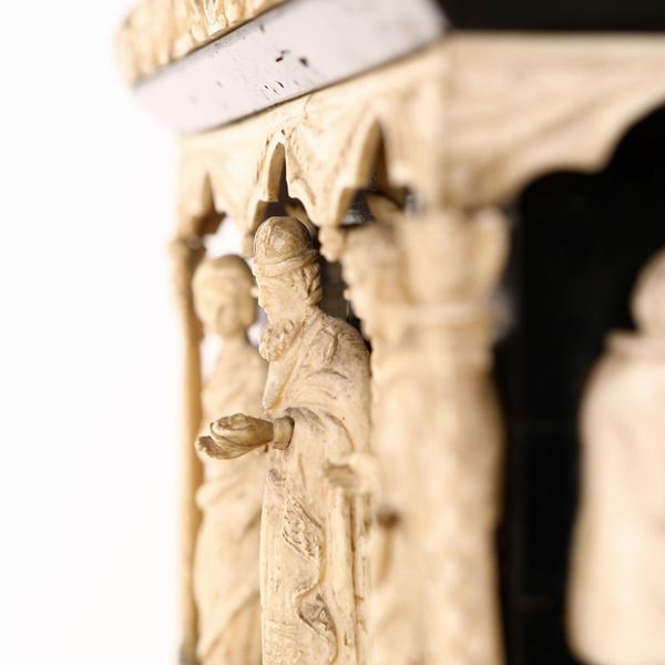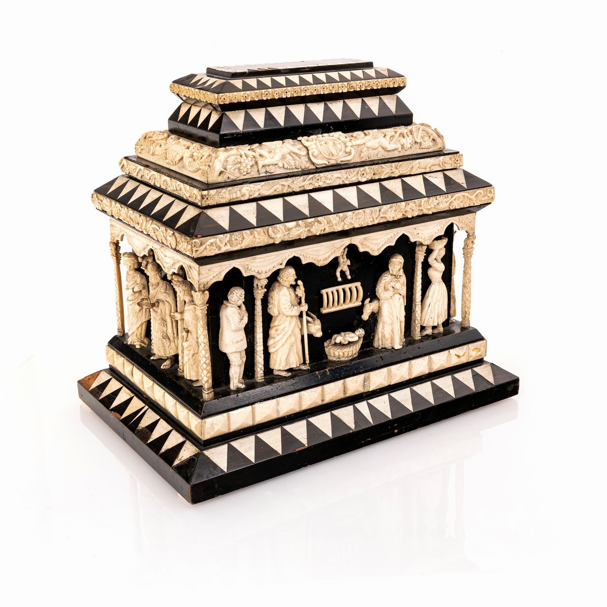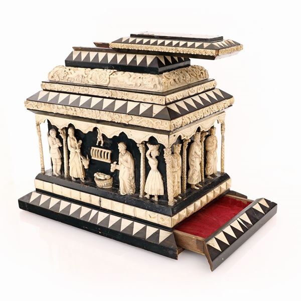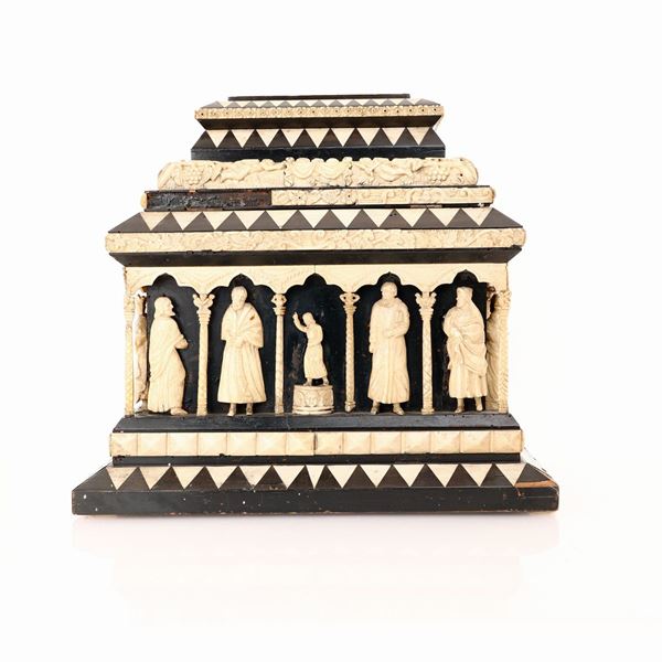 Antico cofanetto nuziale in ebano e osso scolpito, Italia settentrionale, XVIII secolo, nel modo della bottega di Baldassarre degli Embriachi