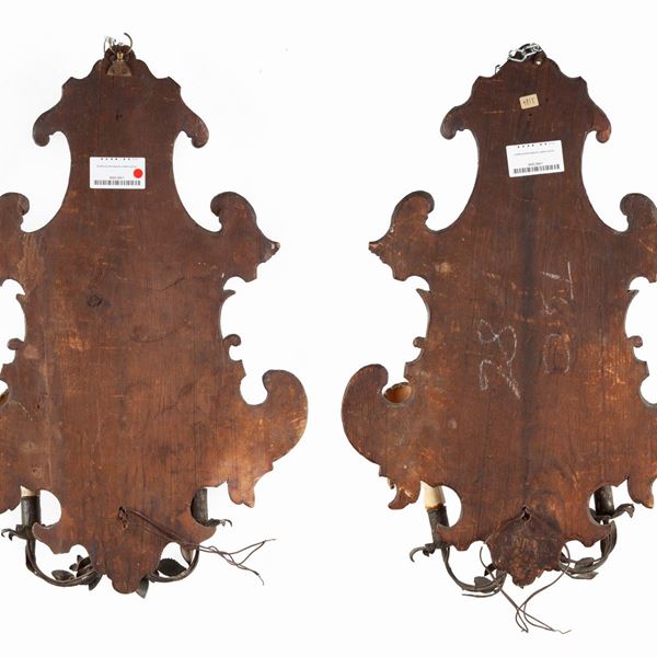 Coppia di applique in legno dipinto, inizi del XIX secolo