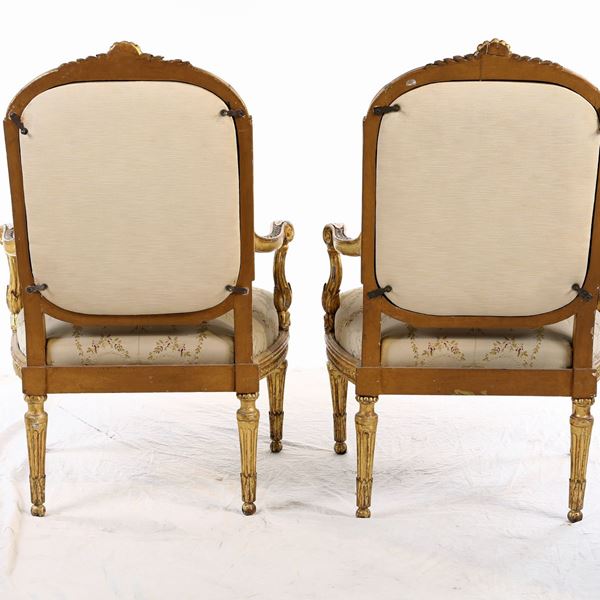Coppia di poltrone in legno intagliato e dorato, XVIII secolo