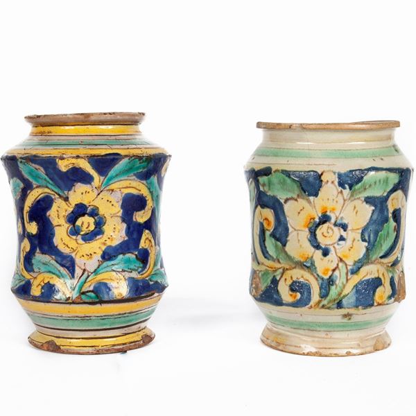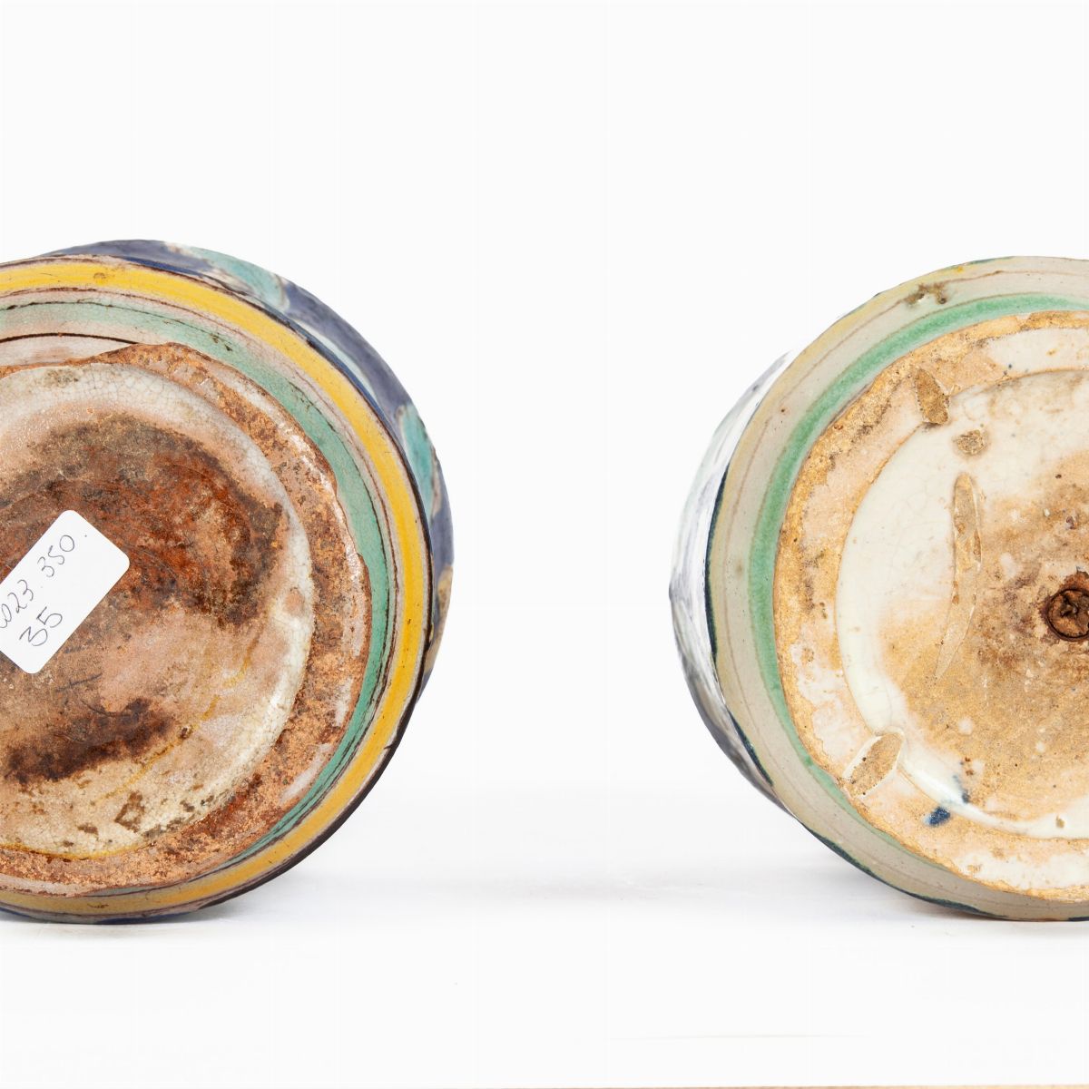 decorati da un medaglione rispettivamente con volto femminile e paesaggio minimo con abitazioni; difetti