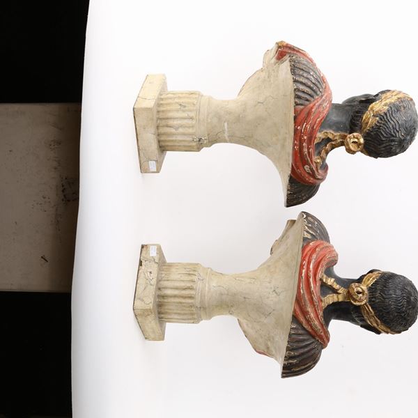 Due busti in legno policromo e dorato XIX secolo