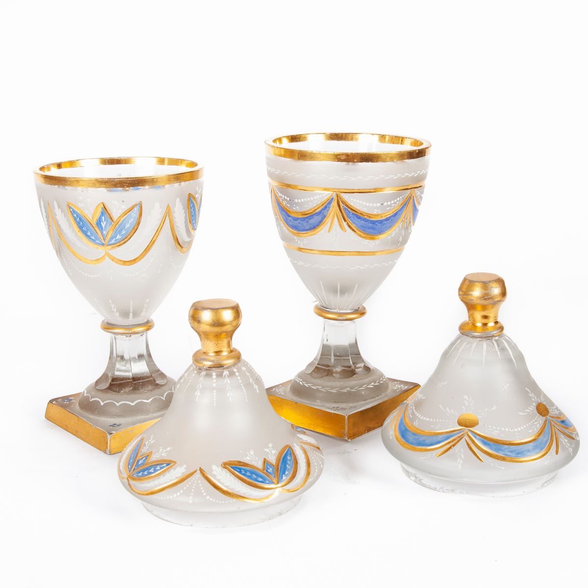 decorati con festoni e motivi vegetali in azzurro, bianco e oro. Lievi difetti