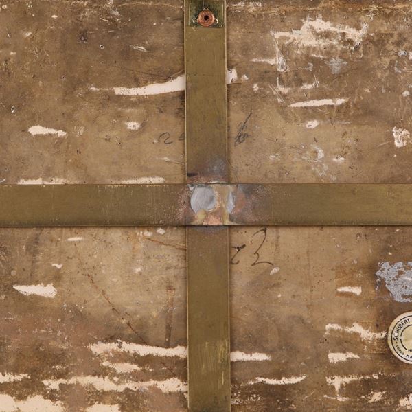 raffigurante un paesaggio lacustre con figure, resti di tempio classico a sinistra ed alberi a destra. Al verso vecchia etichetta di provenienza Schubert Antichità Milano