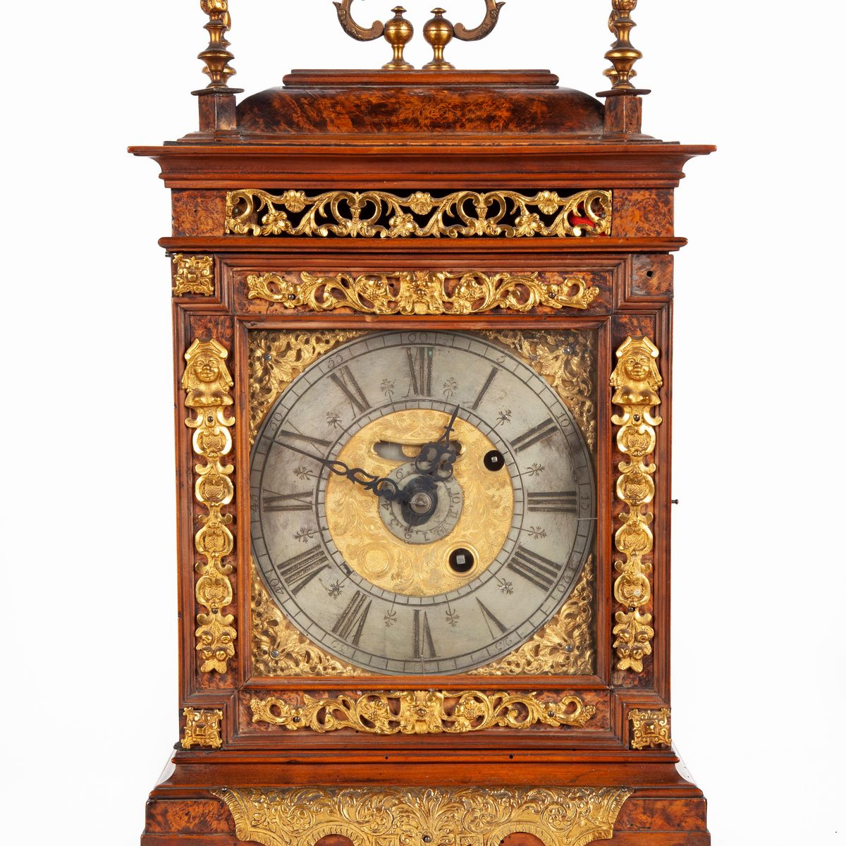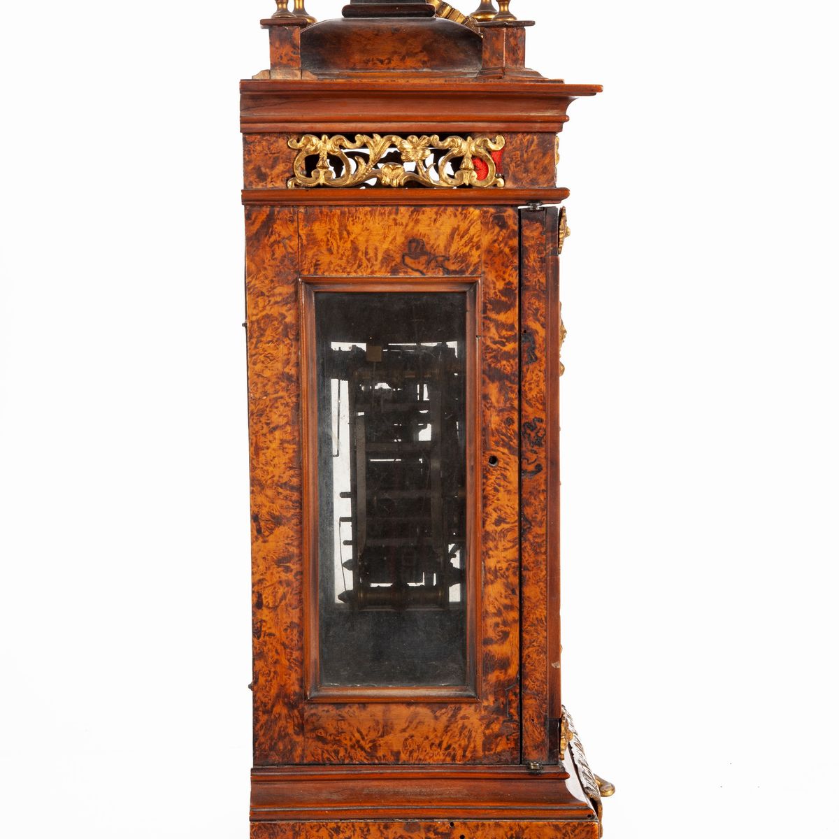 Pendola in radica con finiture ornamentali in bronzo cesellato e dorato, XVIII secolo