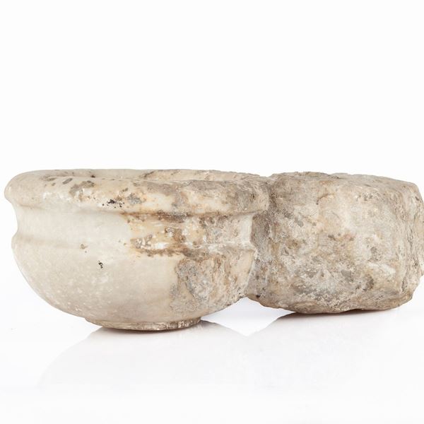 Piccola acquasantiera da muro in marmo bianco, XVII secolo