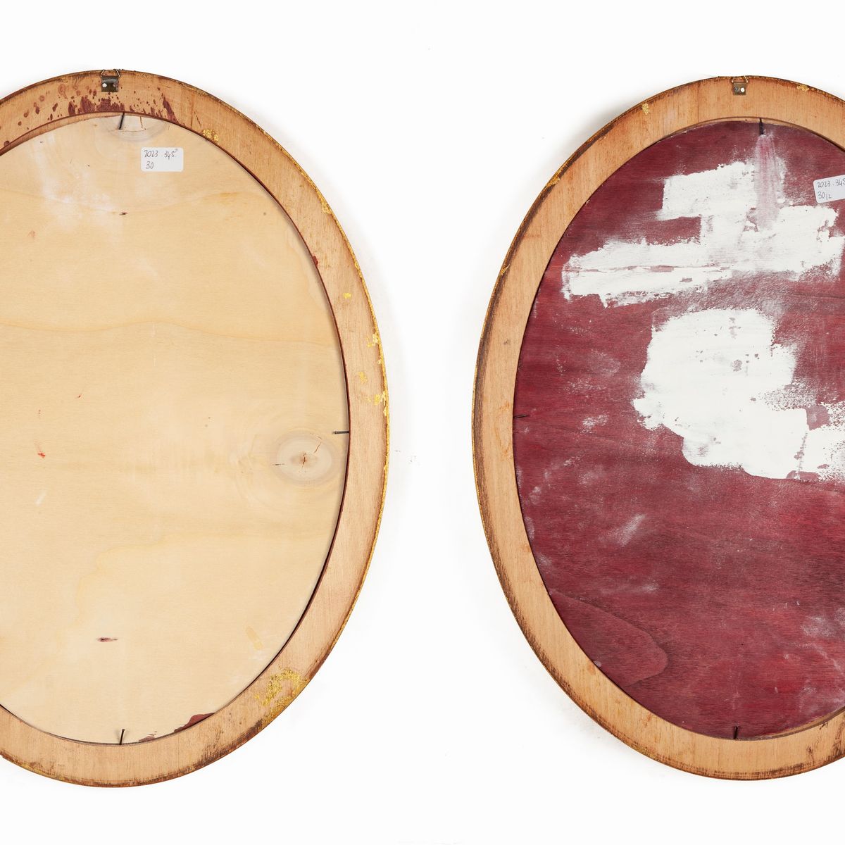Raccolta di calchi in gesso per camei entro due cornici ovali in legno dorato, XIX secolo