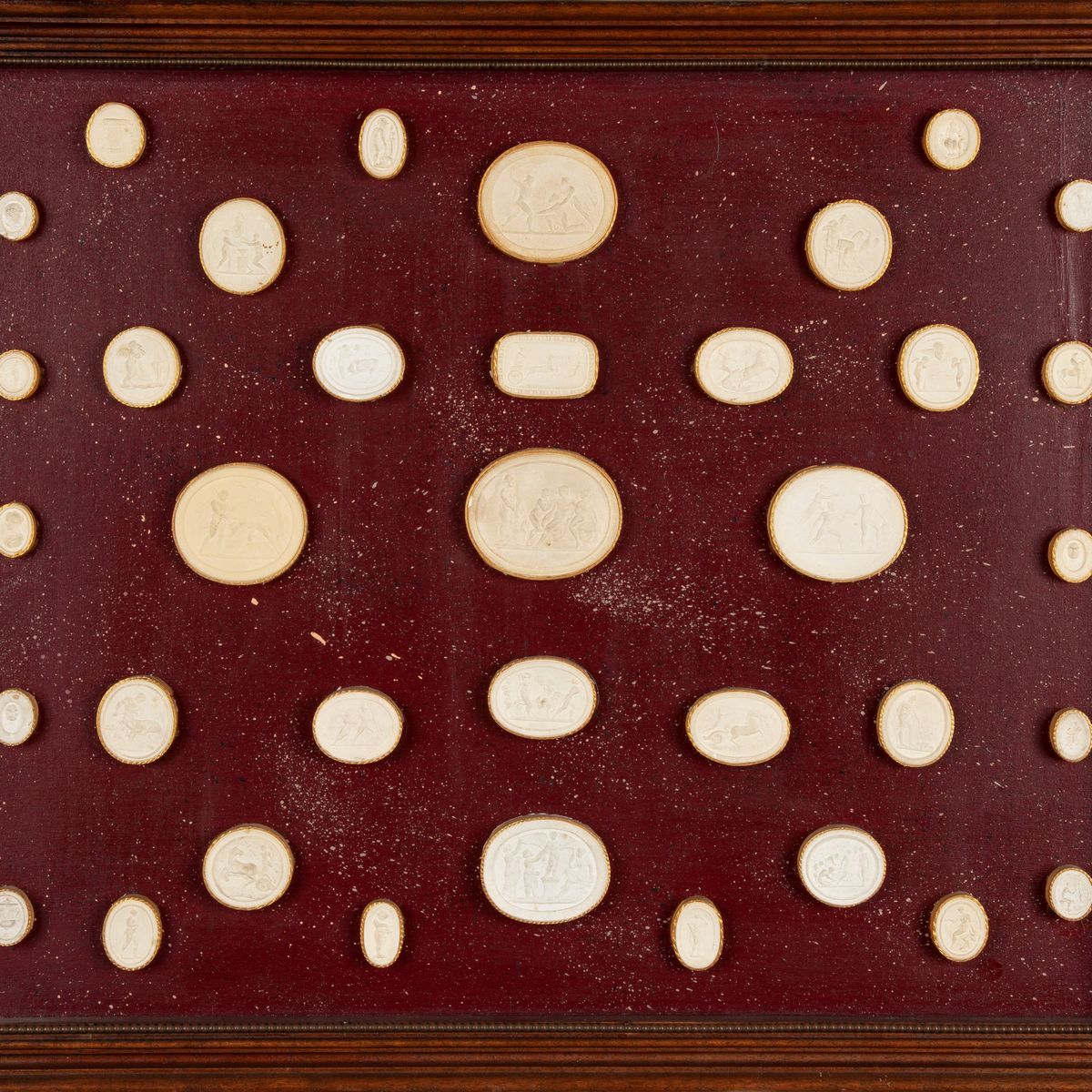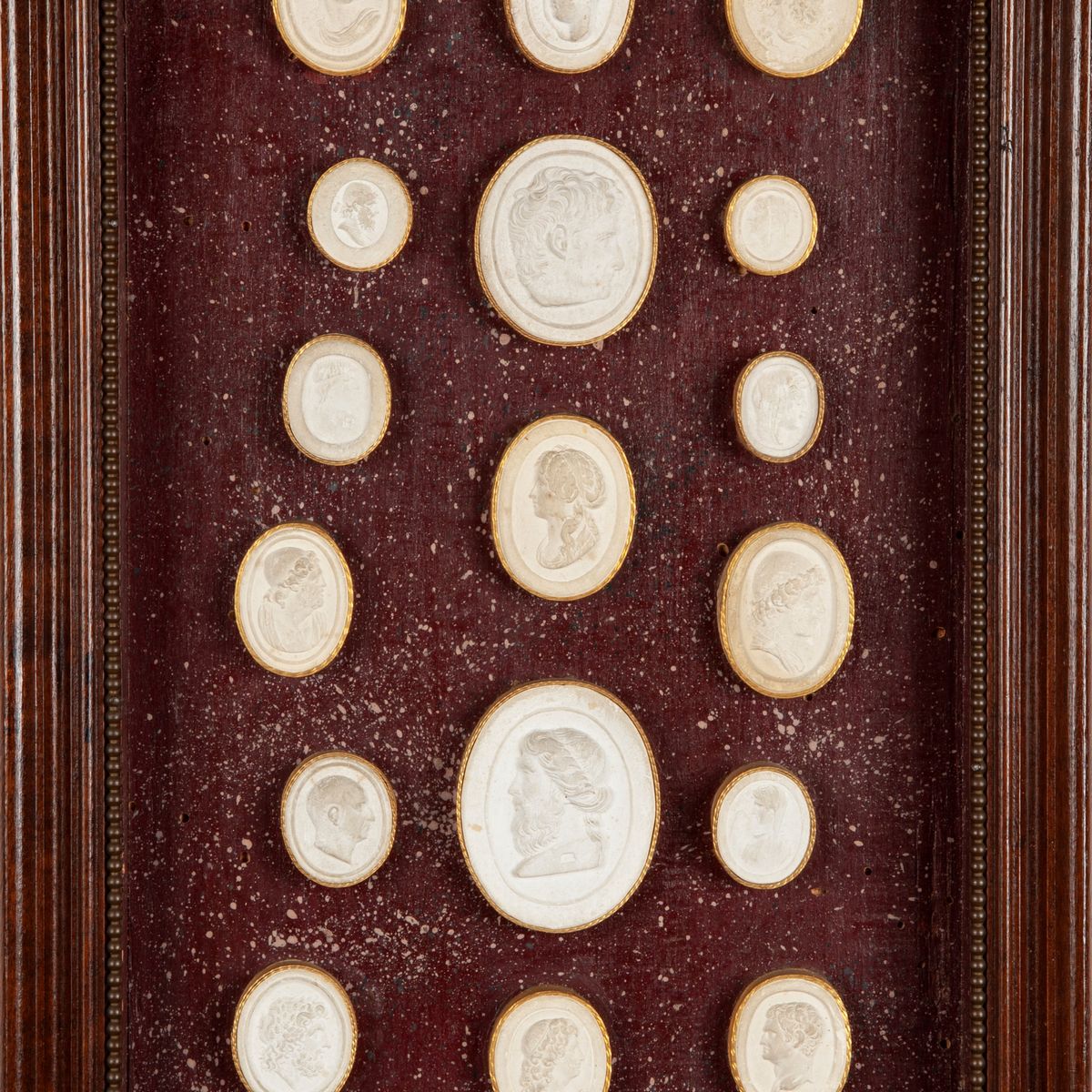 Raccolta di calchi in gesso per camei entro tre cornici, XIX secolo