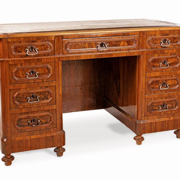Scrivania da centro a bancone in noce, XIX secolo