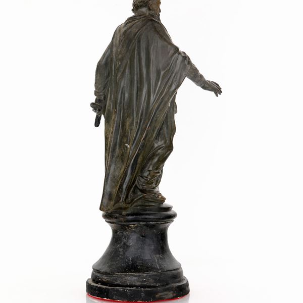 Scultura in terracotta patinata ad imitazione del bronzo raffigurante San Paolo, XIX secolo