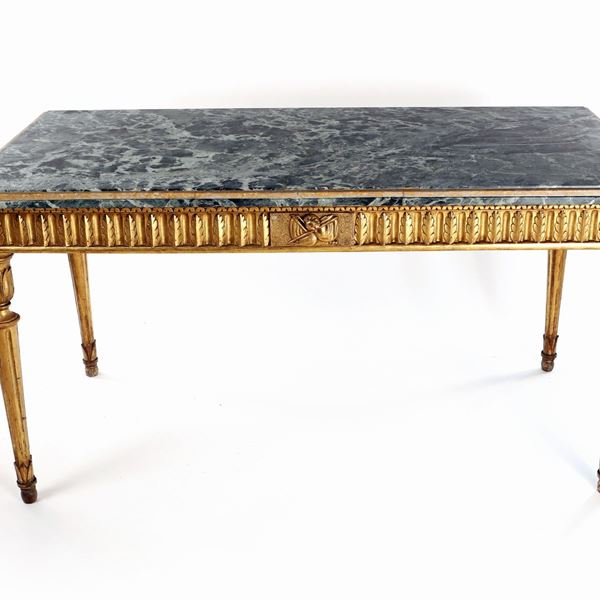 Tavolo da centro di gusto Luigi XVI in legno dorato, fine XIX/inizi XX secolo