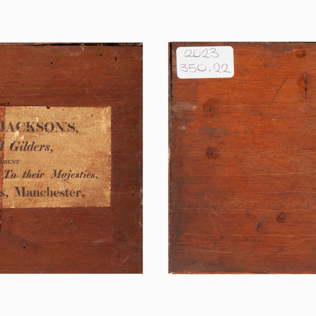 Coppia di dipinti in miniatura raffiguranti marine con velieri e personaggi