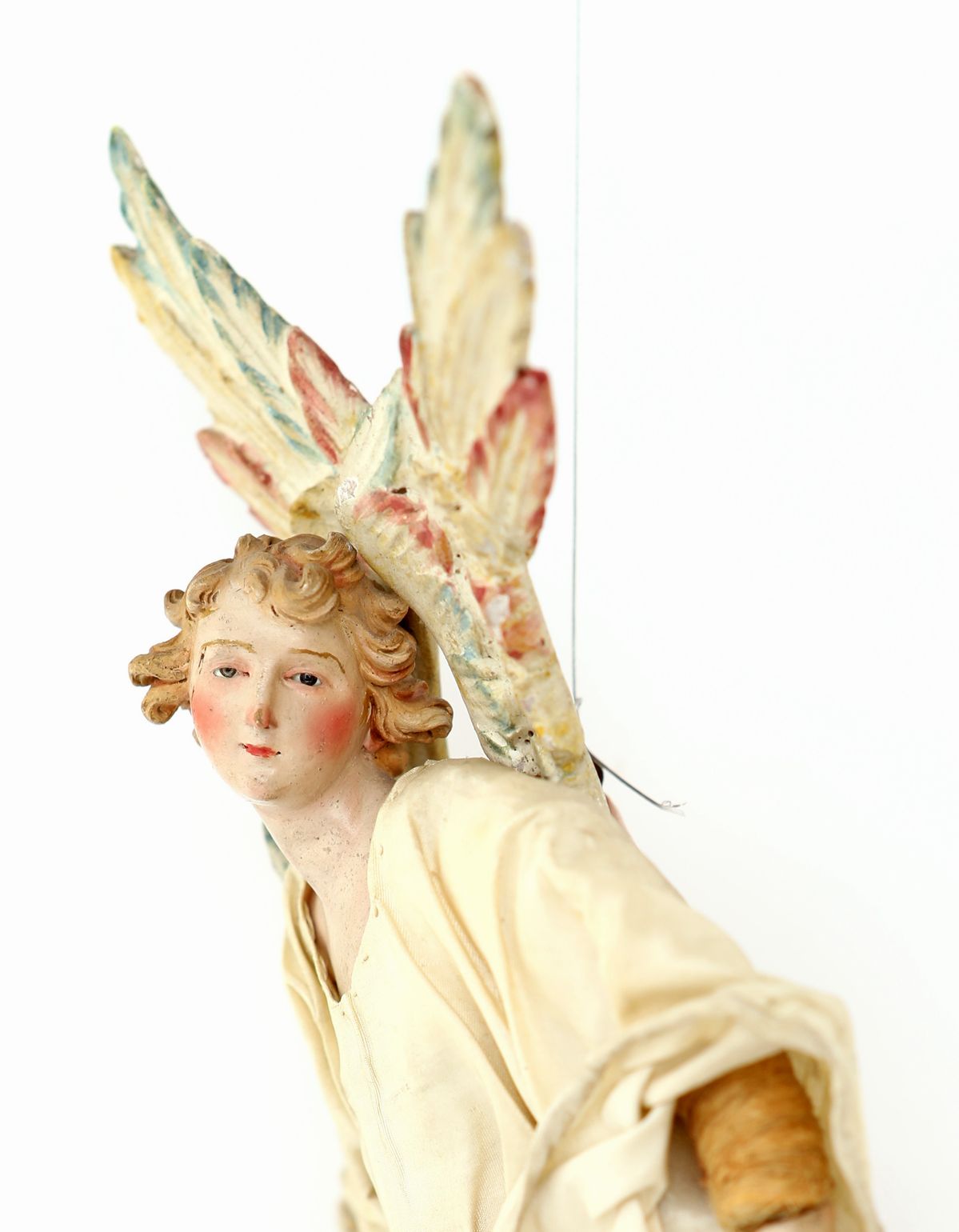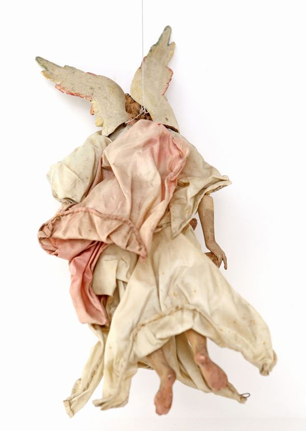 Angelo con ali in legno policromo e turibolo in metallo argentato
