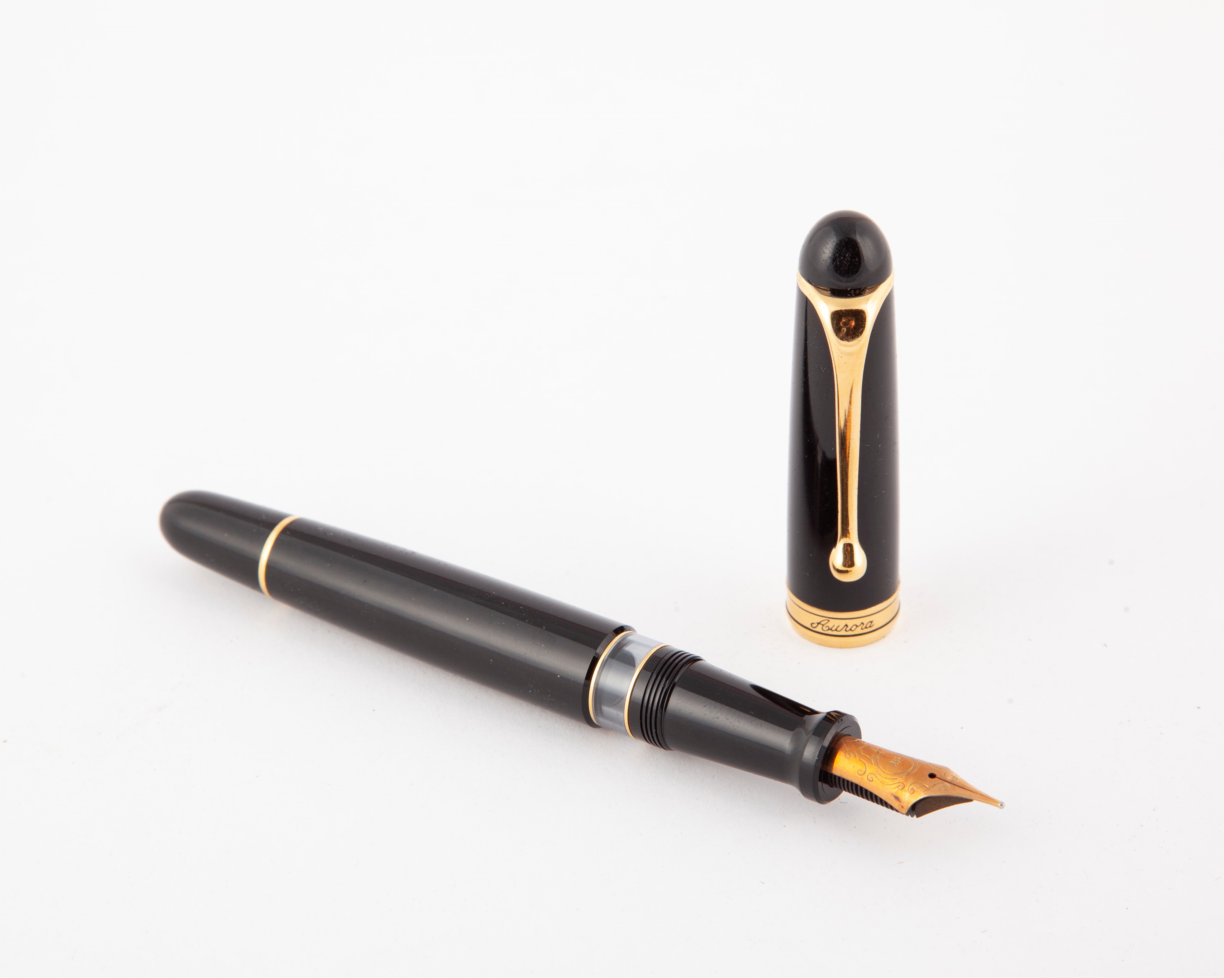 Aurora 88 - Penna stilografica in celluloide nera con particolari dorati