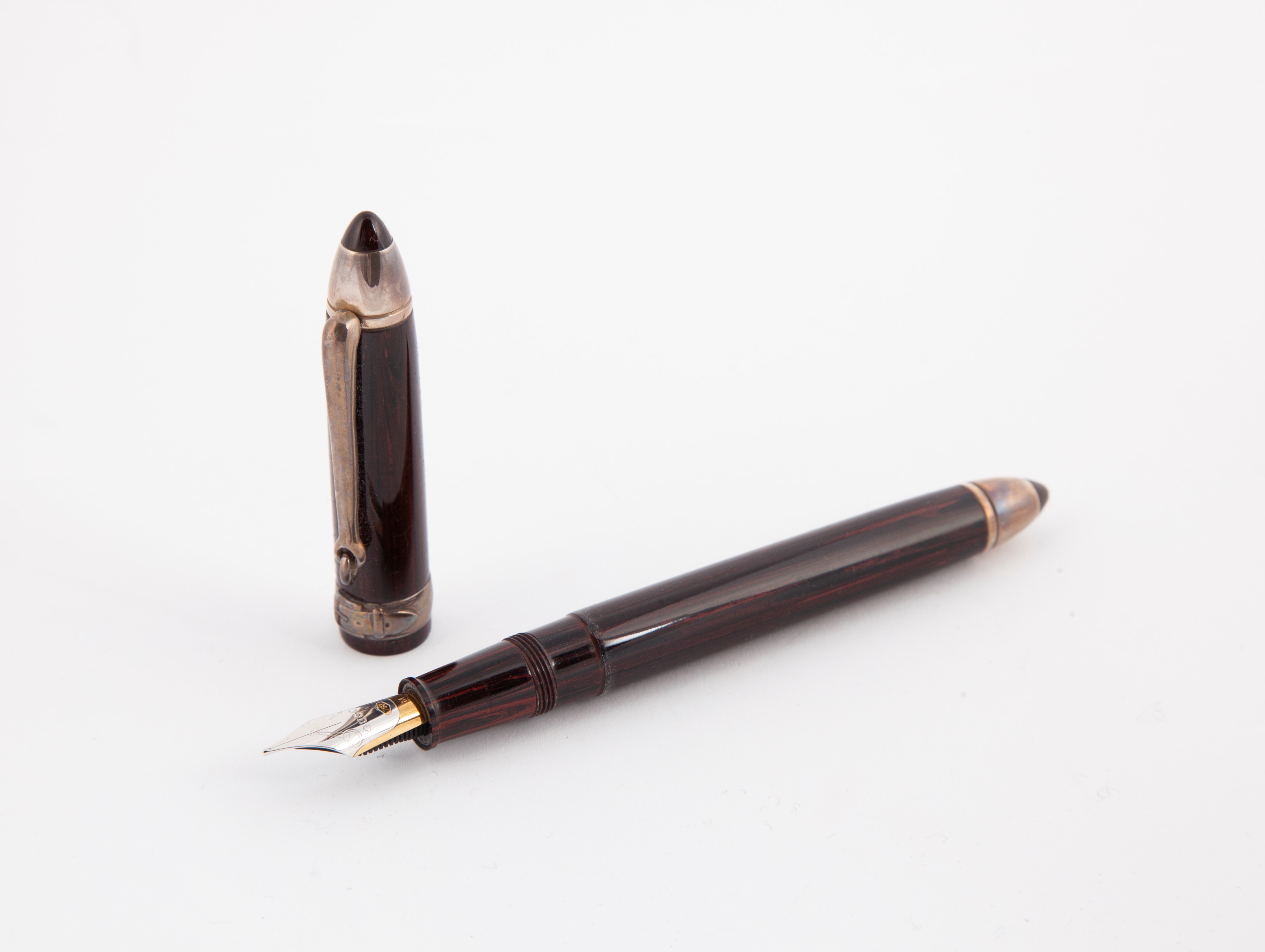 Gucci - Penna stilografica in legno con dettagli in argento 925/000