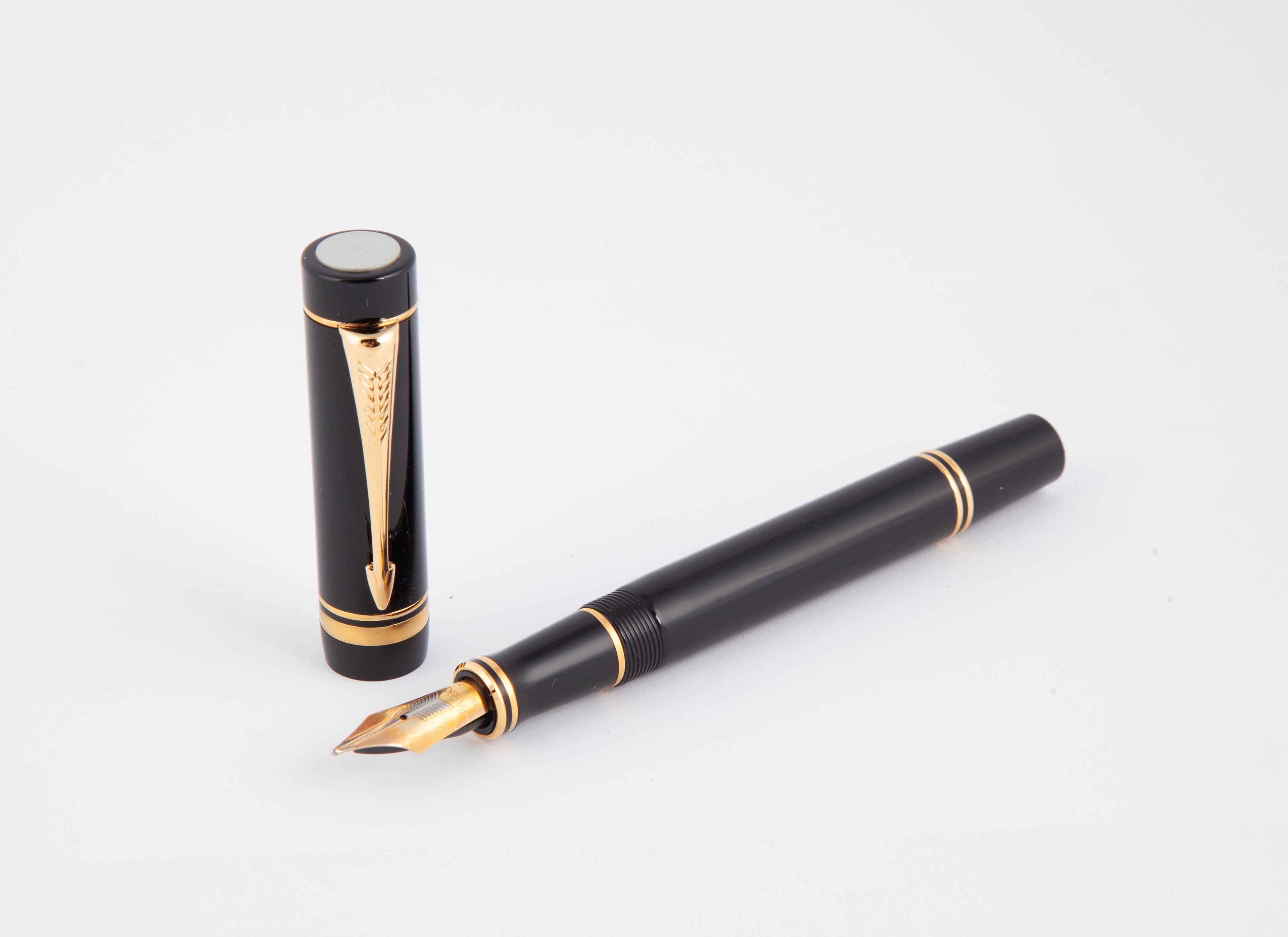 Parker Duofold Memorial Fund - penna stilografica in vernice nera con particolari dorati