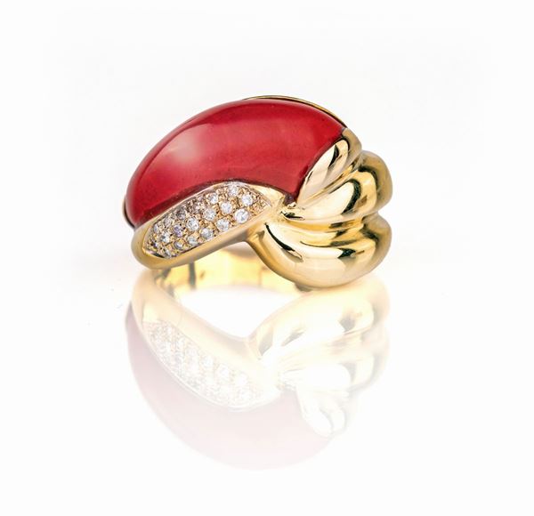 Oro giallo 750/000. Corallo rosso. Peso complessivo gr. 8,90