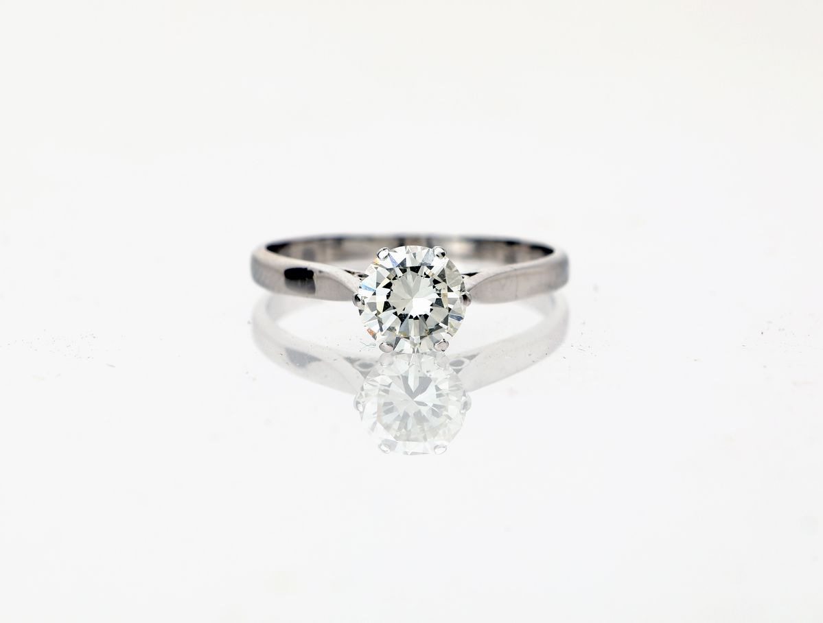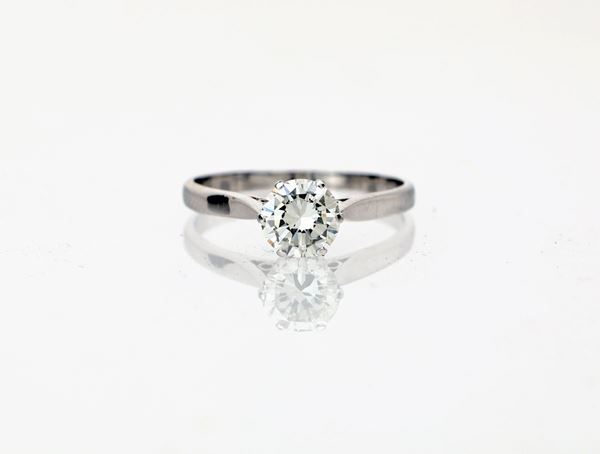 Oro bianco 750/000. Diamante in taglio rotondo brillante 0,80 ca, prob I VS. Peso complessivo gr.2,90.