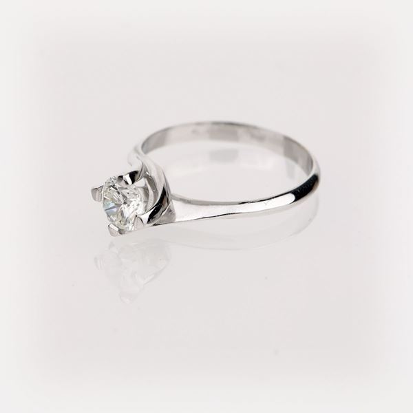 Oro bianco 750/000. Diamante in taglio rotondo brillante ct. 0,75 ca, prob. H-VVS. Peso complessivo gr. 2,50