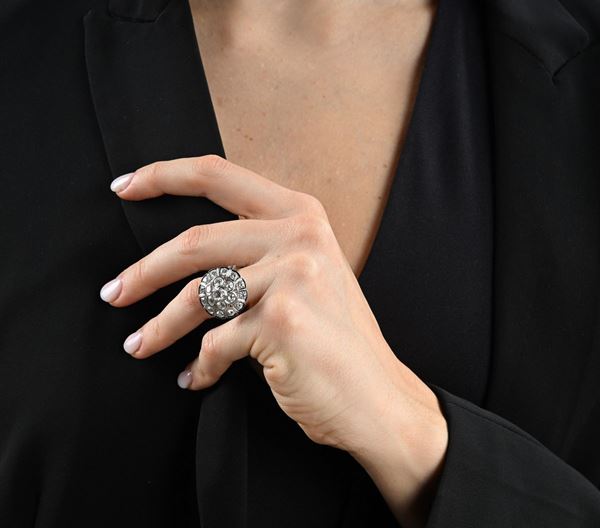 Oro bianco 585/000. Diamanti in taglio rotondo brillante 1,70 ca, prob H, Vs. Peso complessivo gr.6,80.