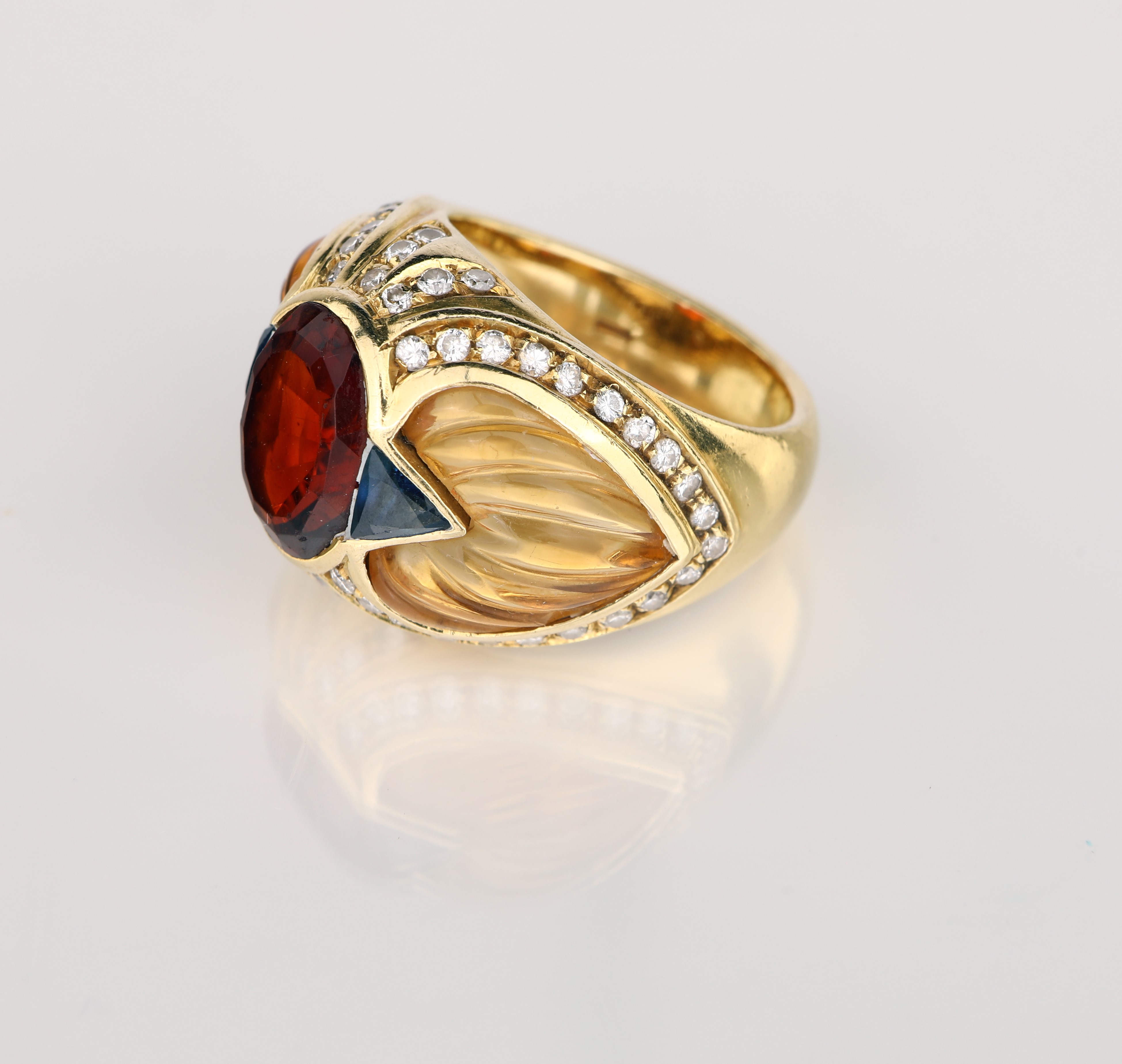 Anello in oro, granato, topazi, zaffiri e brillanti