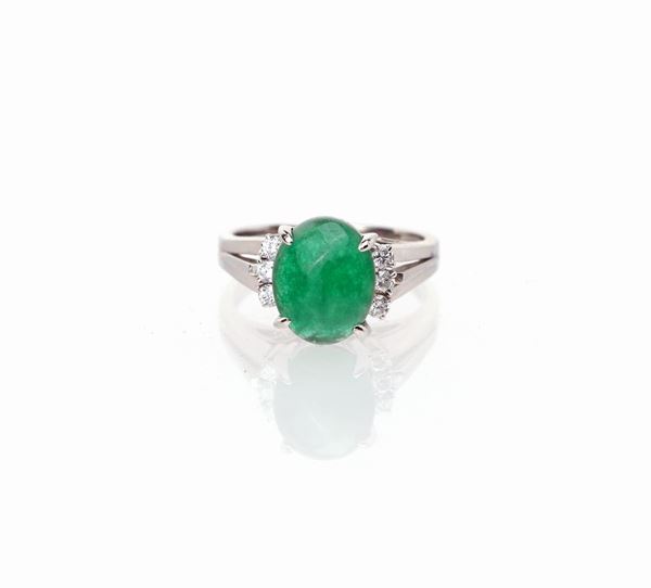 Platino 900/000. Giada naturale ct. 2,60. Brillanti ct. 0,13. Corredato di certificazione gemmologica.