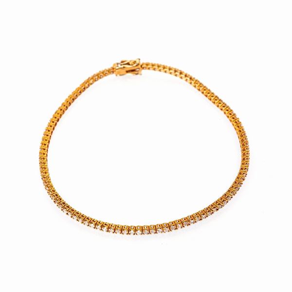 Oro giallo 750/000. Diamanti in taglio rotondo brillante ct. 1,70 ca. , Prob F-G. VVS. Peso complessivo gr. 5,20