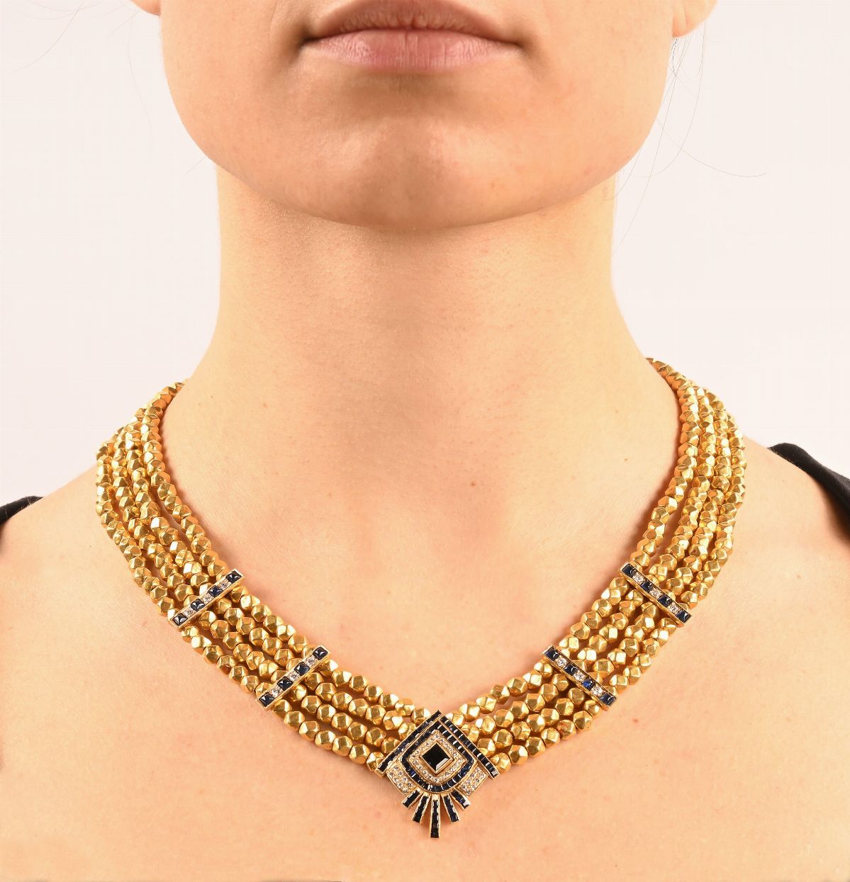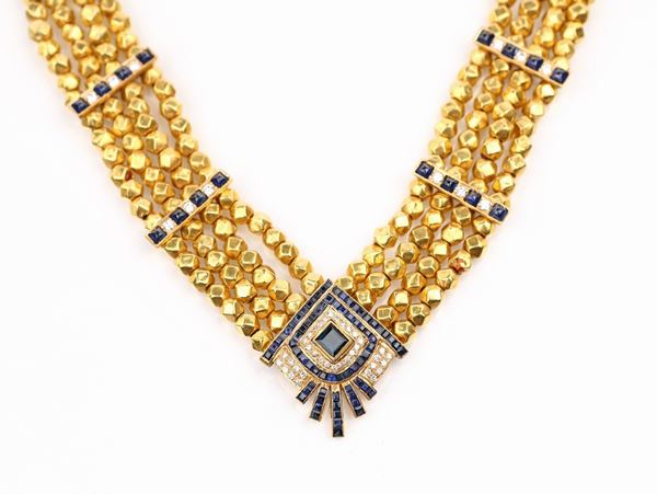 Collana di sfere in oro e centrale in oro zaffiri e brillanti