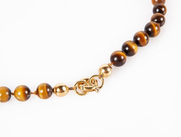 Oro giallo 750/000, occhio di tigre in taglio sferico
