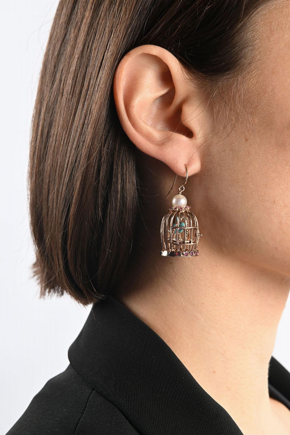 Coppia di orecchini a gabbietta in oro
